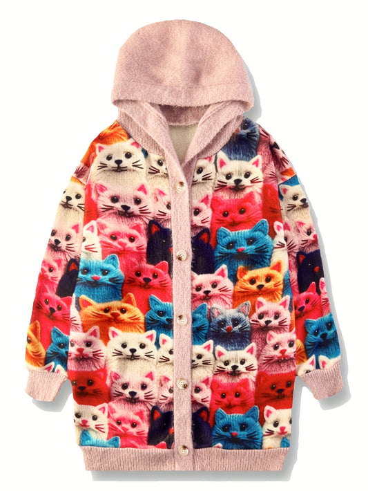 Abrigo Grande con Estampado de Gato y Toque de Piel de Visón 🐾🧥