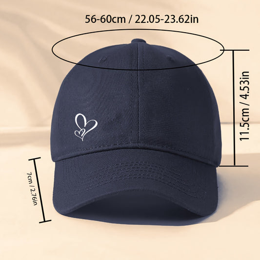Gorra de Beisbol con Estampado de Corazón - Sombrero Ajustable y Transpirable de Algodón para Mujer, Casual y Cómodo