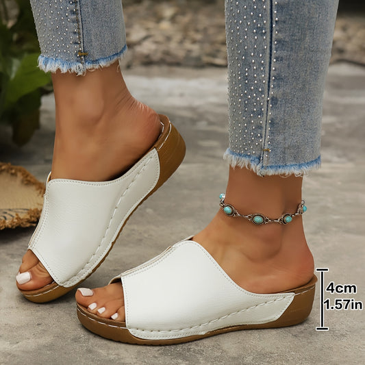 para tu look veraniego en esta temporada estas sandalias slip-on. Su diseño en color sólido, suela gruesa y tacón medio combinan estilo y confort para un calzado casual ideal. ¡Perfectas para tus días modernos y relajado