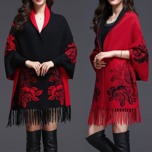 🧣 Chal Elegante de Jacquard con Flecos – Estilo Capa para Otoño e Invierno