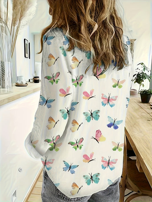 🌸 Camisa Casual de Manga Larga con Estampado de Mariposas para Mujer – Un Toque Vibrante y Natural para Cada Estación 🌸