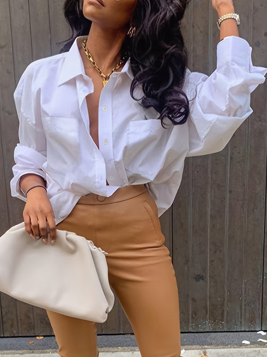 🌸 Blusa Elegante de Cuello Notch con Ojales para Mujer – Una Prenda Sofisticada para la Primavera y el Otoño 🌿