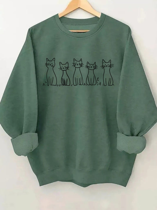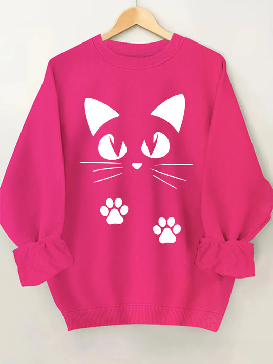 🐾 Sudadera Blanca de Cuello Redondo para Mujer con Ilustración de Gato – Estilo Casual y Divertido para Todos los Días 🐾
