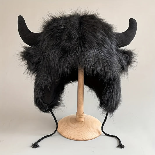 Gorro de Vaca Esponjoso con Cuernos - Estilo Clásico y Cálido para el Invierno 🐮❄️