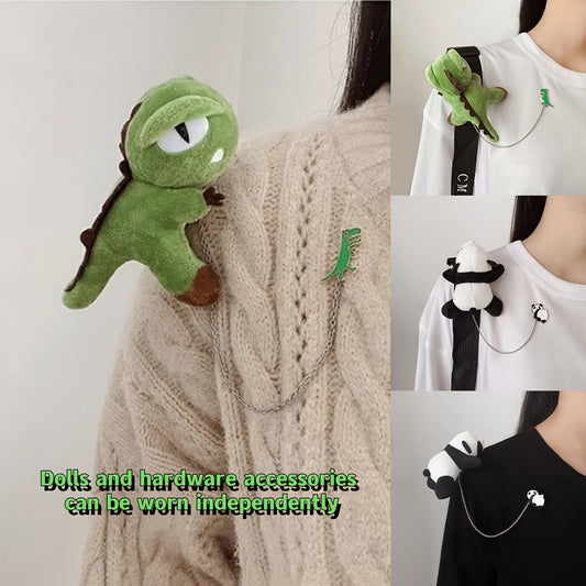 Broche de Peluche para Parejas - Dinosaurio Verde & Panda con Cadena