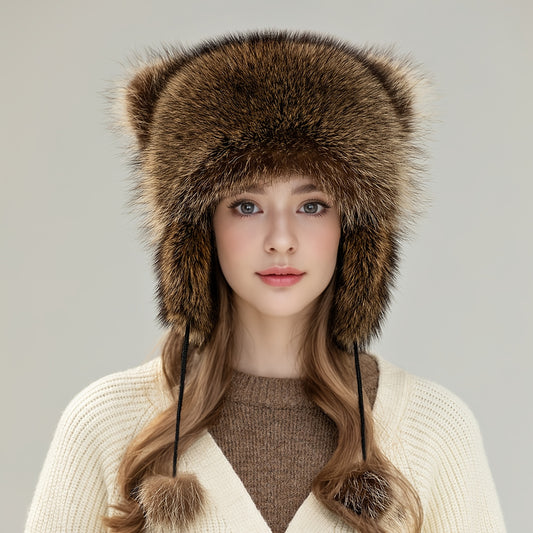 Gorro de Invierno con Borla de Piel Sintética y Cola de Mapache - Diseño Cálido y Divertido 🐾❄️