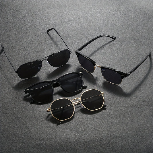 vSet de 4 Gafas Clásicas para Hombre – Diseño Ovalado Irregular, Estilo Urbano y Ejecutivo