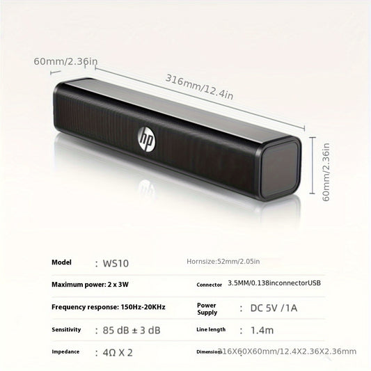 🎵 Barra de Sonido Estéreo HP WS10 – Potente, Compacta y USB