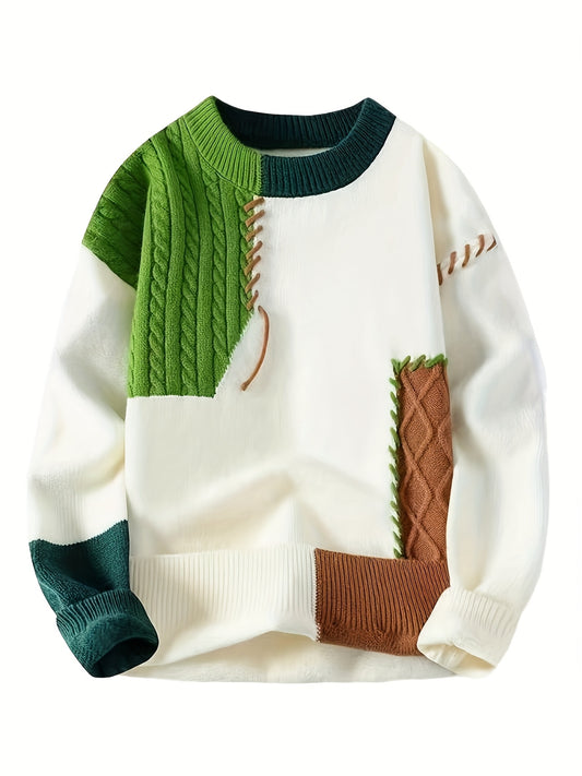 🧥 Suéter Masculino Tejido con Bloques de Color – Estilo Urbano para Otoño e Invierno