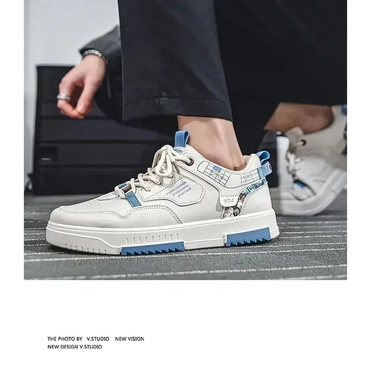 Zapatillas deportivas informales para hombre | Zapatillas bajas con cordones | Suela de PVC duradera | Plantilla de tela cómoda | Elegantes tonos beige y gris | Marca "Sport" | Calzado versátil para exteriores.